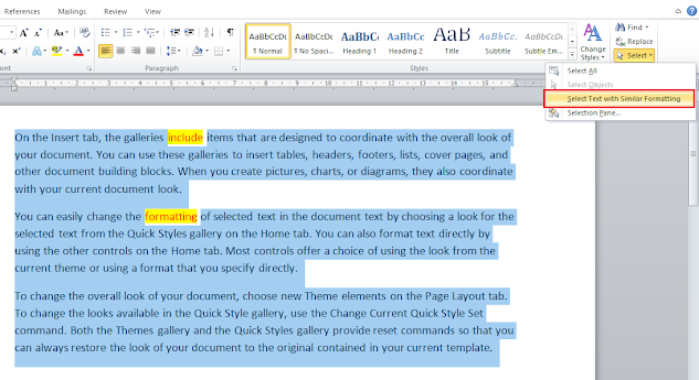 | Select Text With Similar Formatting In MS Word 2010 |